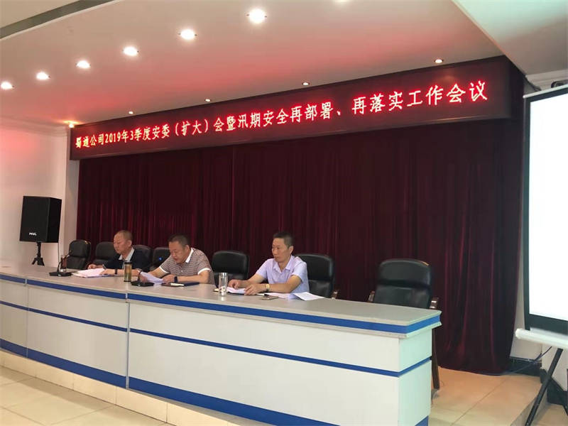 2019年7月23日,蜀通公司黨委副書記、總經(jīng)理、安委會主任余輝在公司機(jī)關(guān)會議室主持召開了2019年三季度安委(擴(kuò)大)會暨汛期安全工作再部署、再落實(shí)工作會議。公司安委會成員及各基層安全二、三責(zé)任人共計40人參加此次會議。