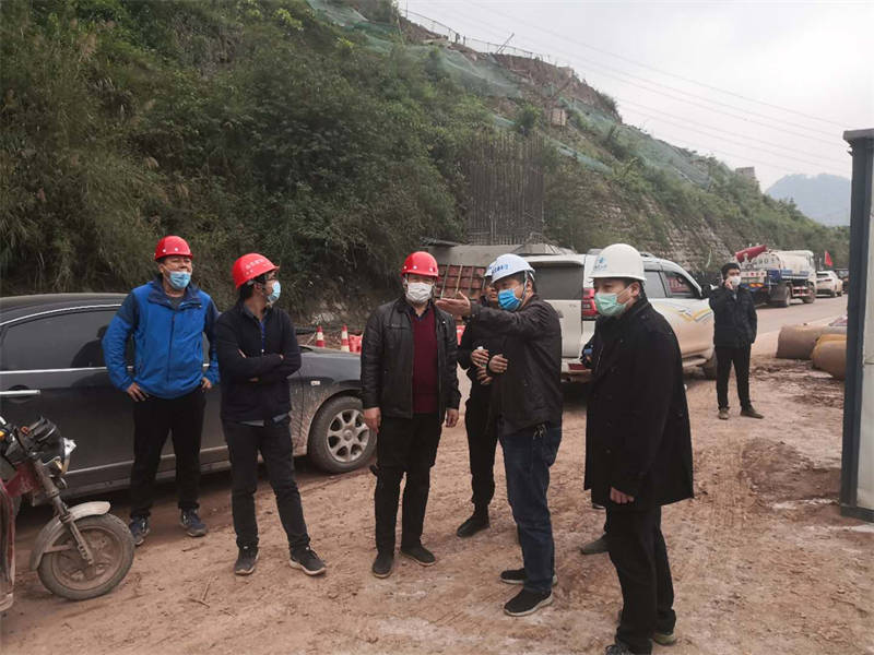 在雨名快速通道項目施工現(xiàn)場,杜峻聽取了項目負(fù)責(zé)人關(guān)于項目建設(shè)情況的匯報,詳細(xì)了解了項目安全生產(chǎn)工作開展情況。
