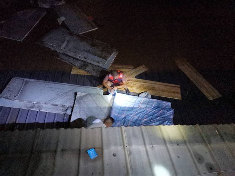 “感謝3名值班人員及時打電話通知我,否則后果不堪設想!焙喚纯f,回想起昨晚的情形,心里還是有些后怕。當時,他接到值班人員電話后,發(fā)現(xiàn)門衛(wèi)室外的洪水已經(jīng)逼近脖子,無法順利撤離,洪水漲勢又快,不一會兒,他只得爬上門衛(wèi)室頂端才能避免被水淹沒。后來,洪水沖來了一棵樹,簡敬奎借助這棵樹慢慢轉移到了附近一棵較高大的樹上繼續(xù)躲避,直至黃志和方華軍前來營救。