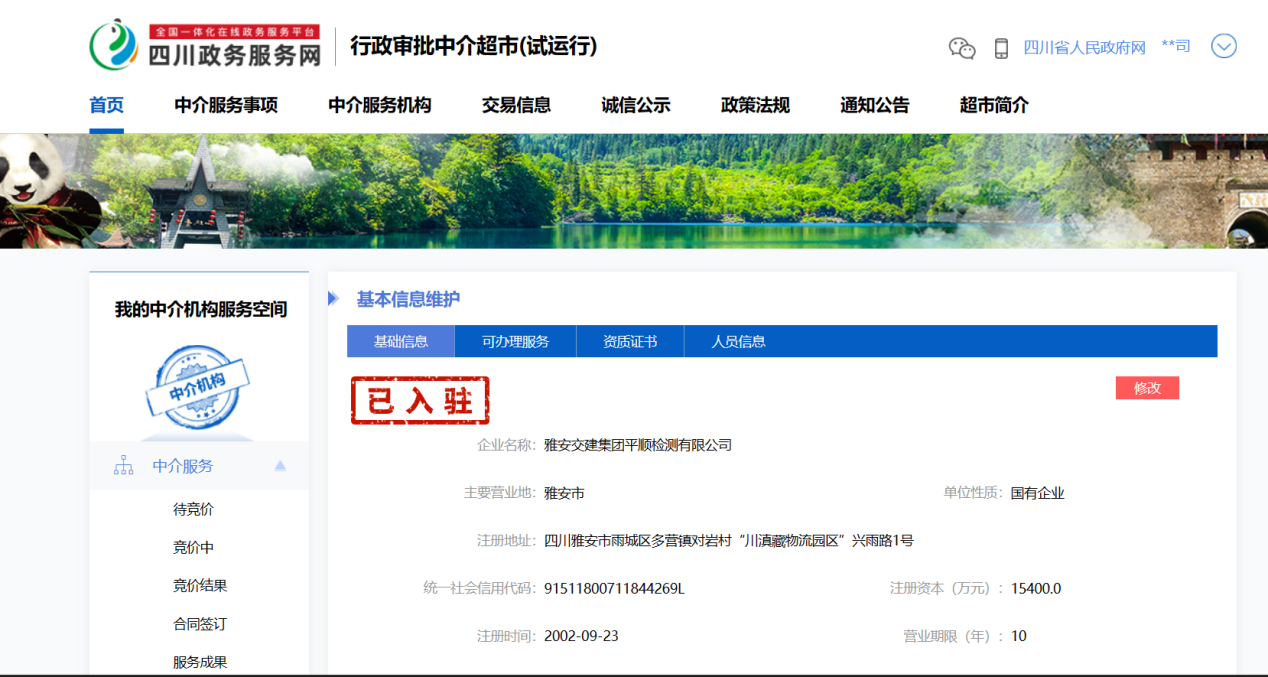 為進一步深化“放管服”便民服務(wù),加強行政審批中介服務(wù)事項管理,規(guī)范中介服務(wù)行為,經(jīng)雅安市雨城區(qū)運管所資格審核通過,近日,雅安交建集團平順檢測有限公司正式入駐四川政務(wù)服務(wù)網(wǎng)行政審批中介超市。