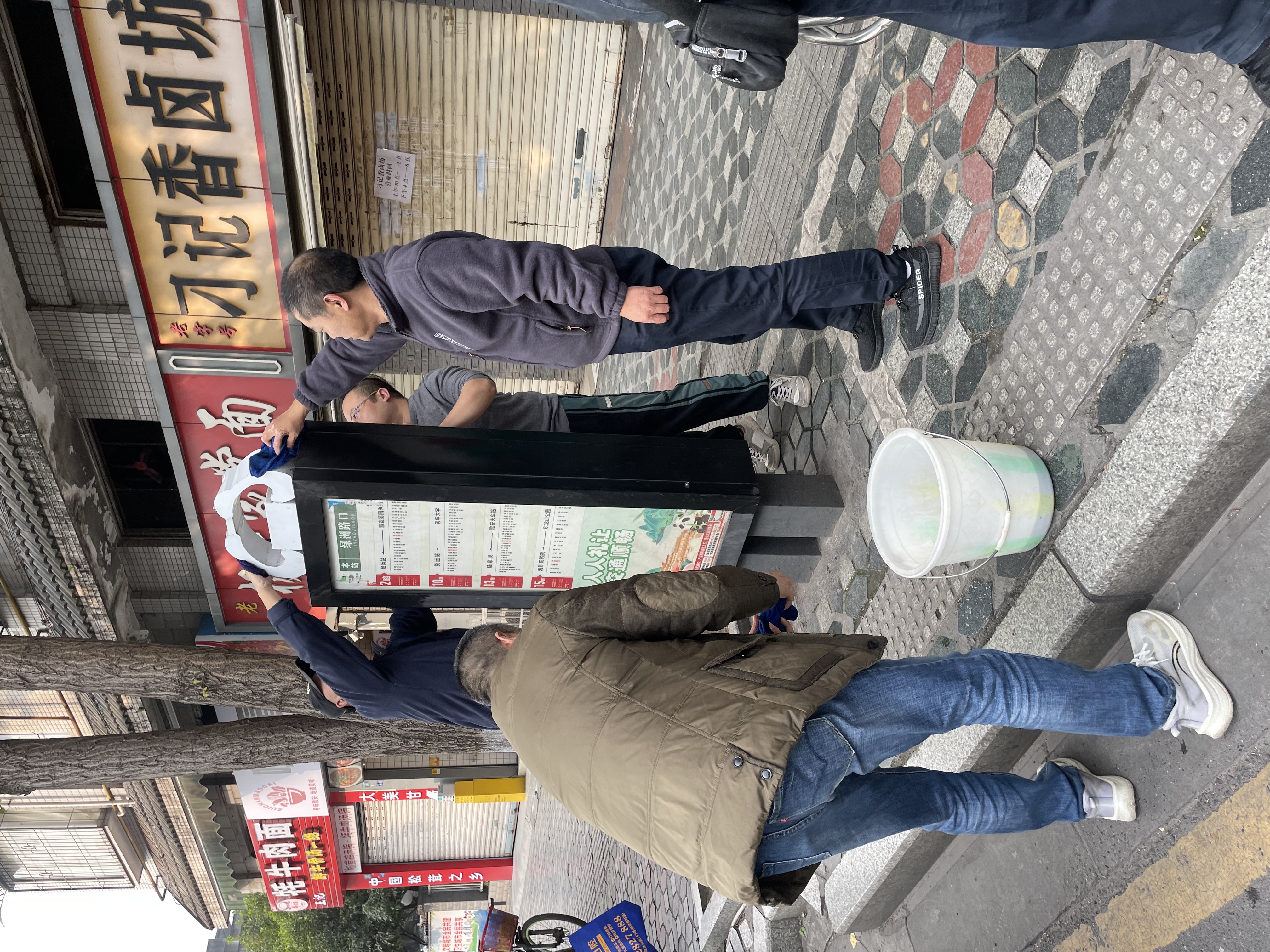 活動當天,黨員們手持抹布、水桶等清潔工具,兵分多路奔赴各個公交站點。大家不怕臟、不怕累,認真細致地清理站牌,有的踮起腳尖、伸長手臂,用抹布仔細擦拭站牌的櫥窗玻璃;有的提著水桶,清洗傳遞抹布,打好“下手”;還有的手持鏟刀,認真刮去站牌上的“牛皮癬”廣告。