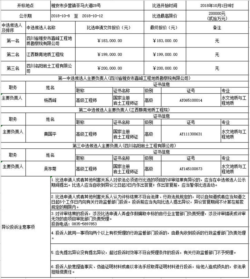 雅安交建集團(tuán)丹石建材有限公司第二期地質(zhì)勘察服務(wù)項(xiàng)目比選公示