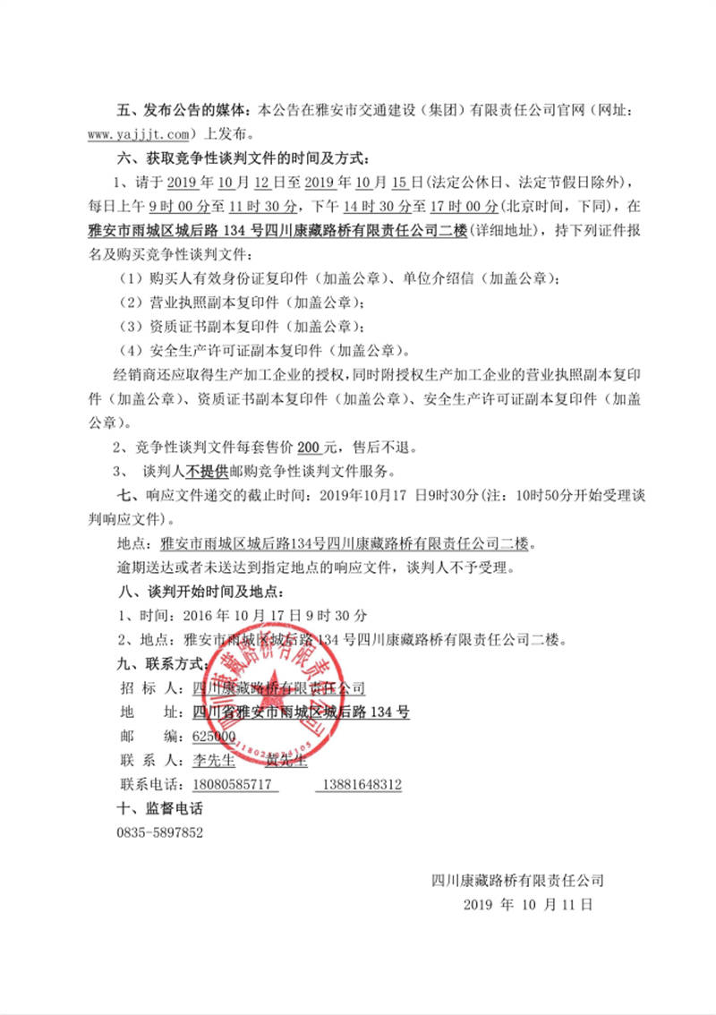 四川康藏路橋有限責(zé)任公司國道351線磽磧至夾金山段路面改造工程防護(hù)網(wǎng)采購競(jìng)爭(zhēng)性談判公告