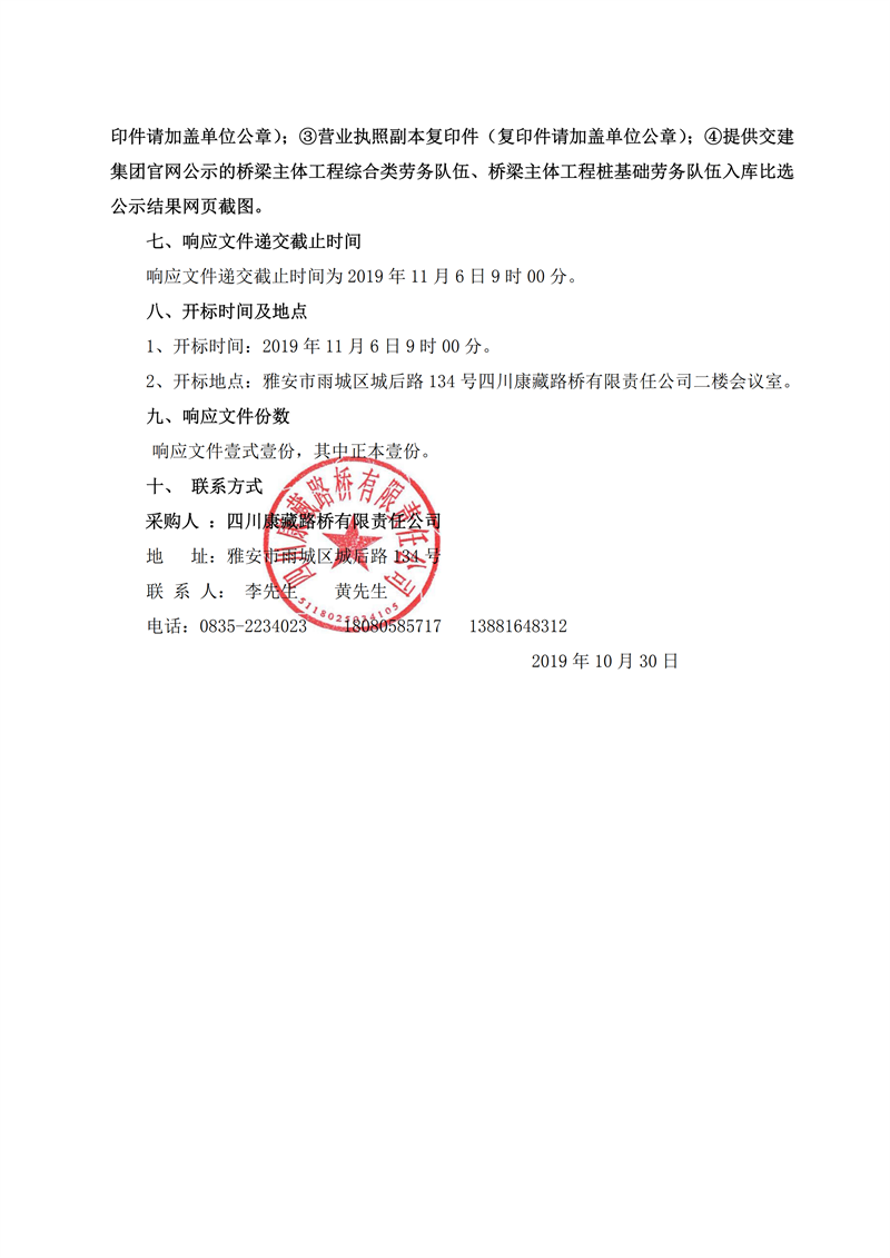 四川康藏路橋有限責任公司省道104線草壩至姚橋段改建工程項目橋梁樁基礎(chǔ)施工勞務競價公告