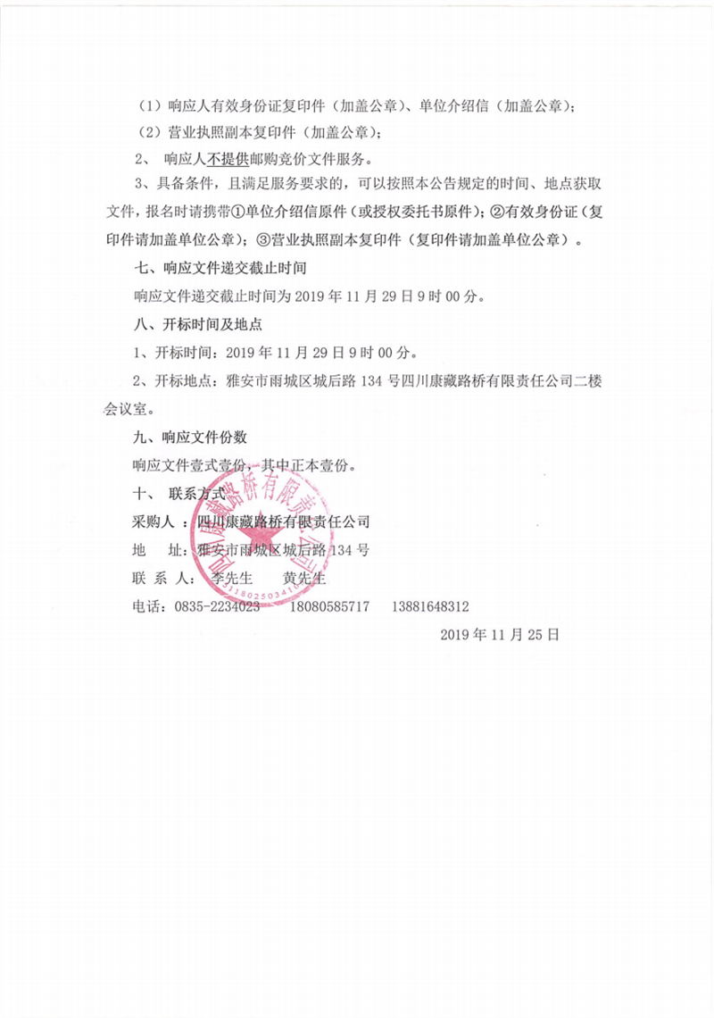 四川康藏路橋有限責任公司蘆山縣龍門、大川等8個鄉(xiāng)鎮(zhèn)基礎(chǔ)設(shè)施恢復提升工程項目施工勞務(wù)競價公告