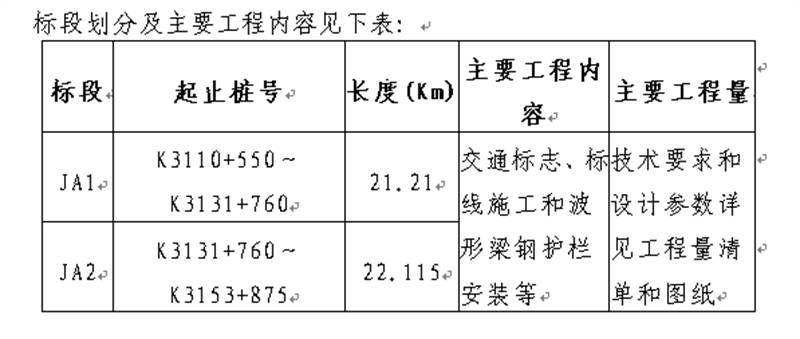 2.3標段劃分:共劃分為 2 個標段,標段名稱為 JA1標段和 JA2標段。