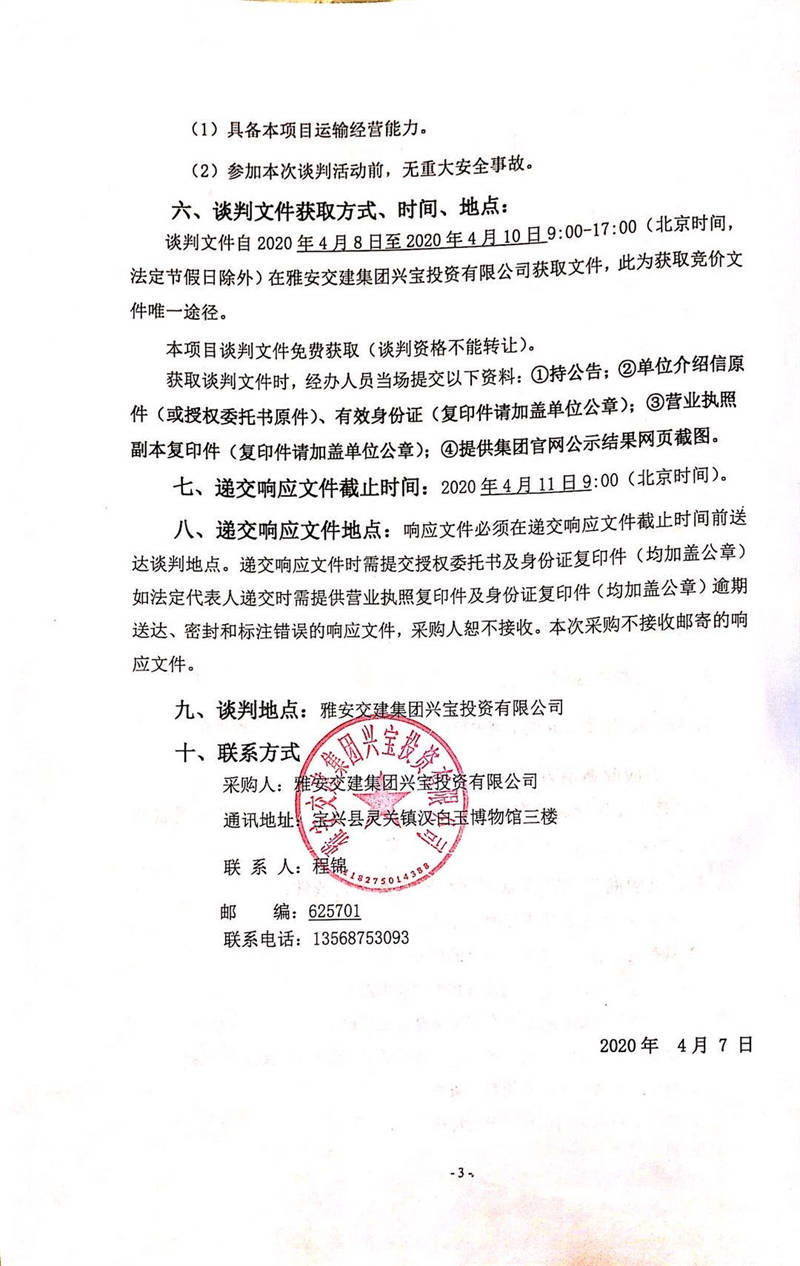 雅安交建集團興寶投資有限公司靈關(guān)鎮(zhèn)代碑寺物流園土地整理棄渣運輸采購項目競爭性談判公告