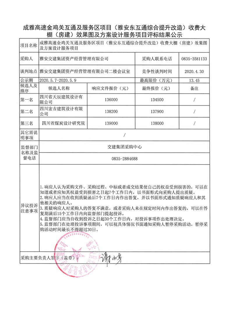 雅安交建集團大興交通開發(fā)有限公司雅安大興南綜合交通樞紐(TOD)項目臨建及場地平整工程項目評標結果公示