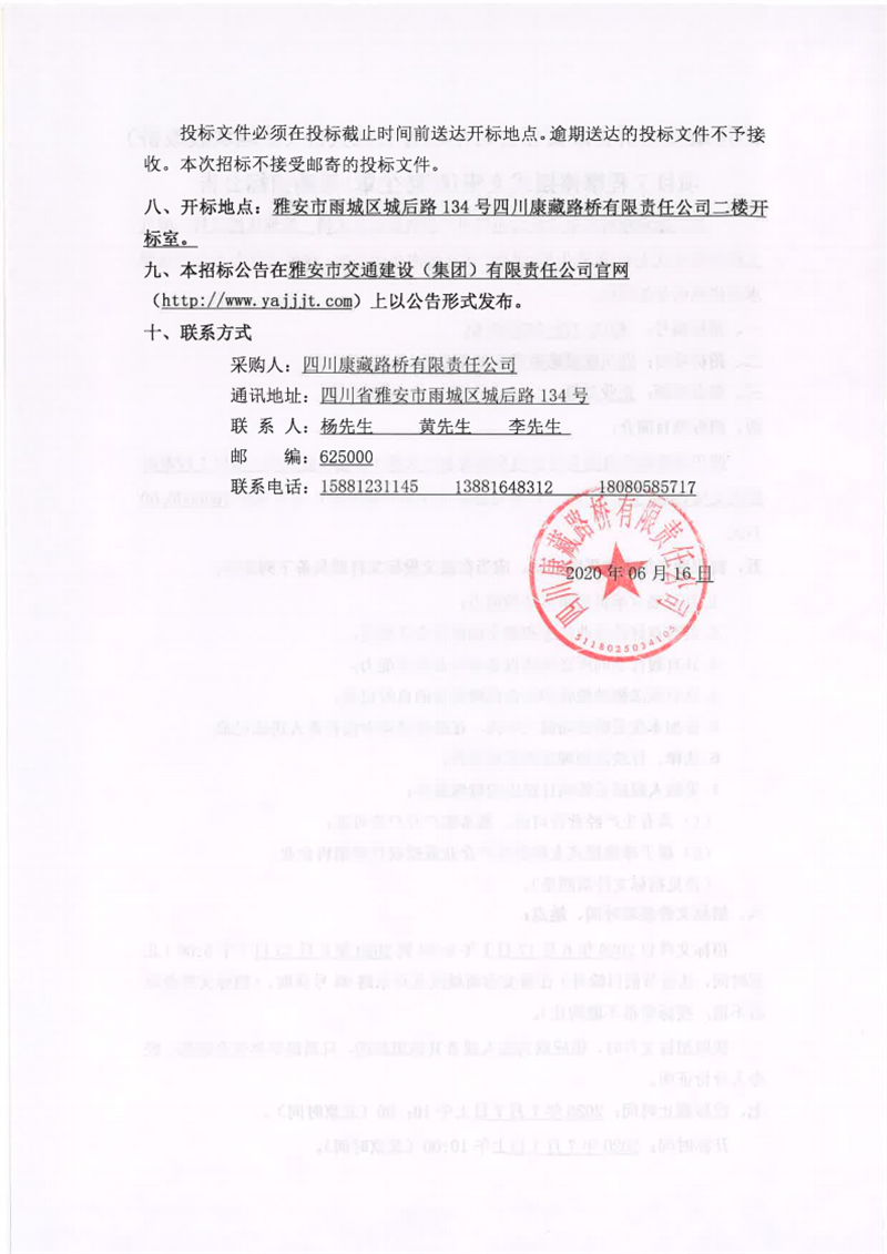 四川康藏路橋有限責任公司寶興分公司省道432線雅安段擴建工程K19新建拌合站施工勞務磋商公告(第二次)