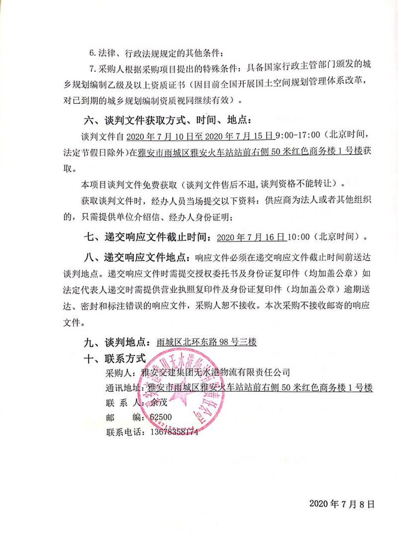 雅安交建集團(tuán)無水港物流有限責(zé)任公司雅安市鳳鳴綜合物流園項(xiàng)目概念規(guī)劃咨詢服務(wù)競爭性談判公告