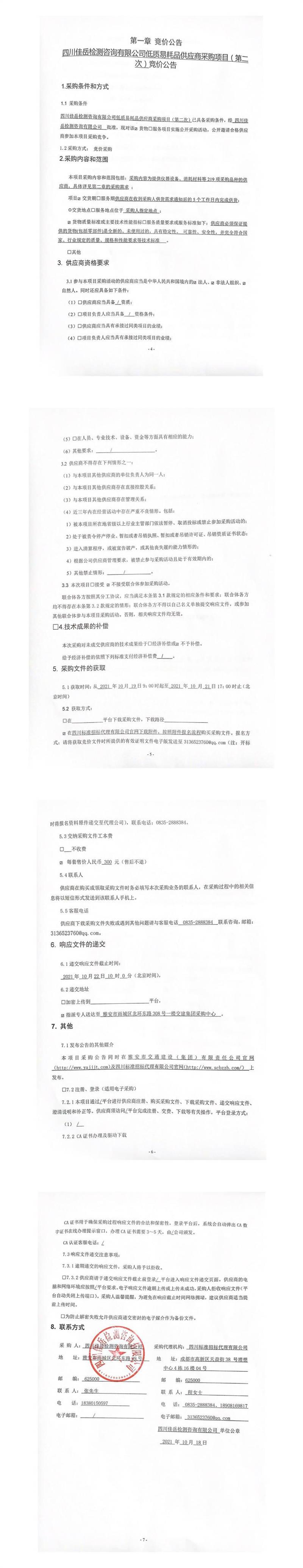 四川佳岳檢測咨詢有限公司低質(zhì)易耗品供應(yīng)商采購項(xiàng)目(第二次)競價(jià)公告