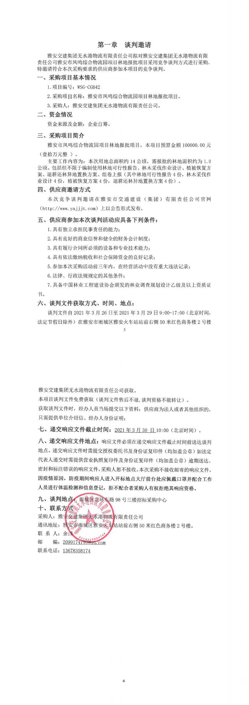 雅安交建集團(tuán)無水港物流有限責(zé)任公司雅安市鳳鳴綜合物流園項(xiàng)目林地報(bào)批項(xiàng)目競爭談判公告