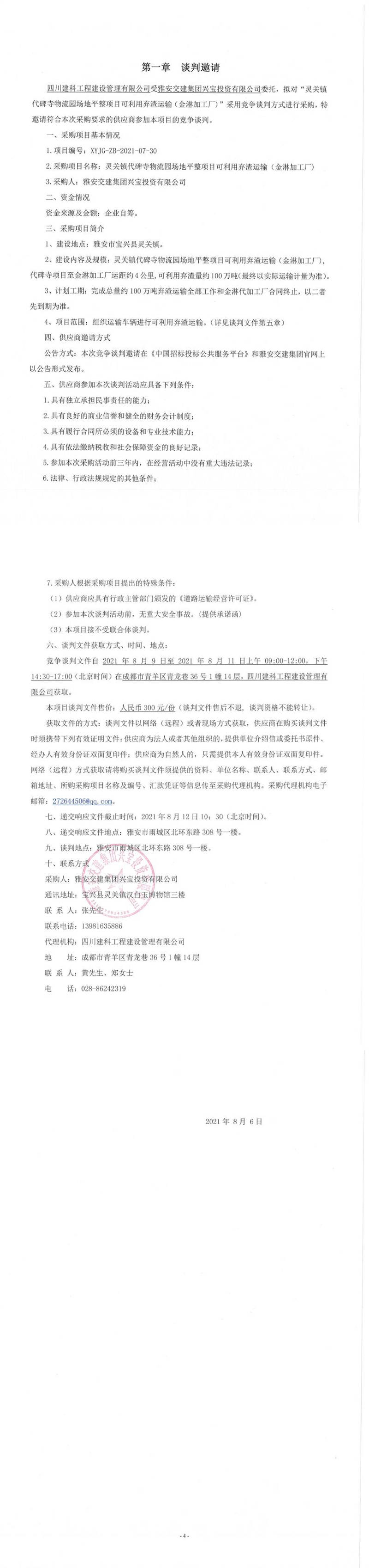 雅安交建集團(tuán)興寶投資有限公司靈關(guān)鎮(zhèn)代碑寺物流園場地平整項(xiàng)目可利用棄渣運(yùn)輸(金淋加工廠)競爭談判公告