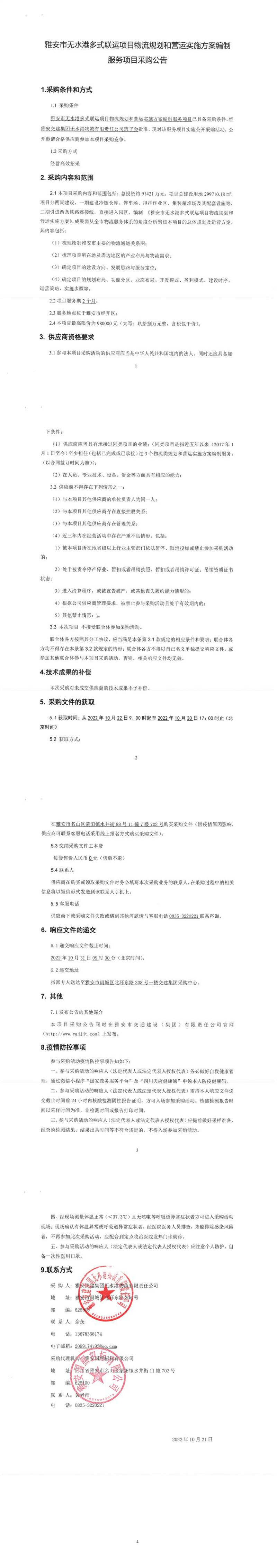 雅安交建集團(tuán)無水港物流有限責(zé)任公司雅安市無水港多式聯(lián)運(yùn)項(xiàng)目物流規(guī)劃和營運(yùn)實(shí)施方案編制服務(wù)項(xiàng)目采購公告