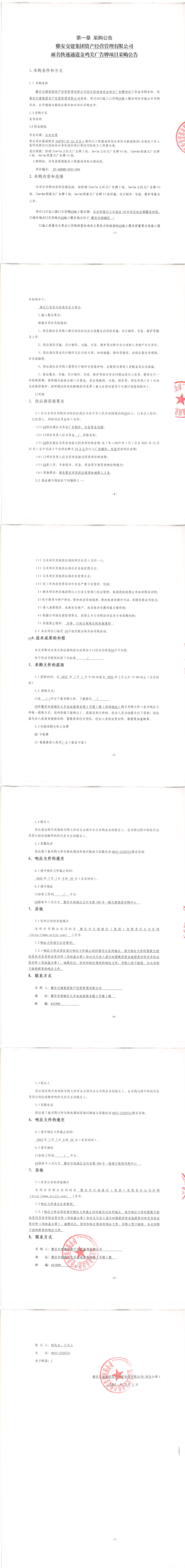 雅安交建集團資產經營管理有限公司雨名快速通道金雞關廣告牌項目采購公告