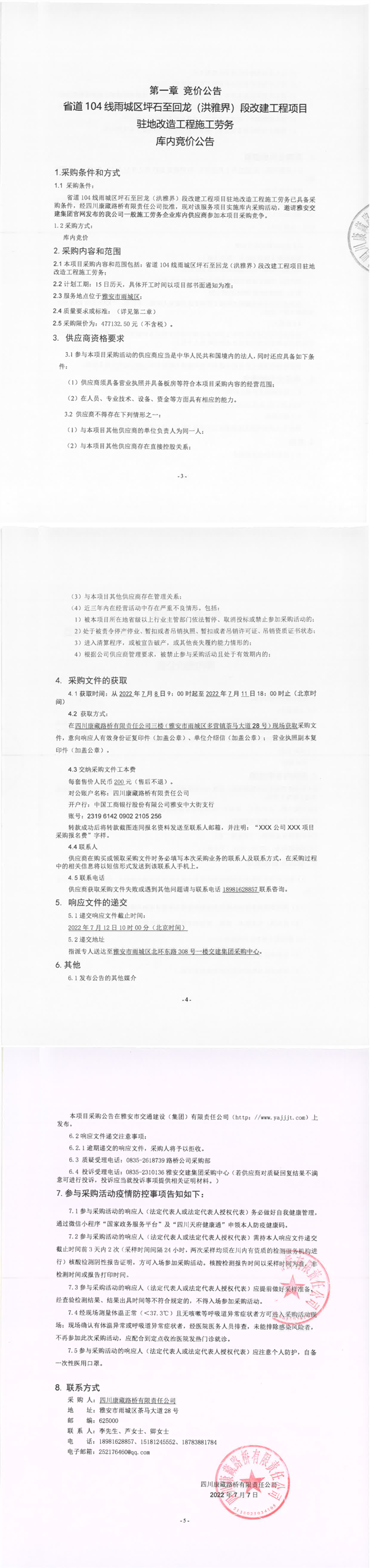 四川康藏路橋有限責(zé)任公司省道104線雨城區(qū)坪石至回龍(洪雅界)段改建工程項(xiàng)目駐地改造工程施工勞務(wù)庫(kù)內(nèi)競(jìng)價(jià)公告
