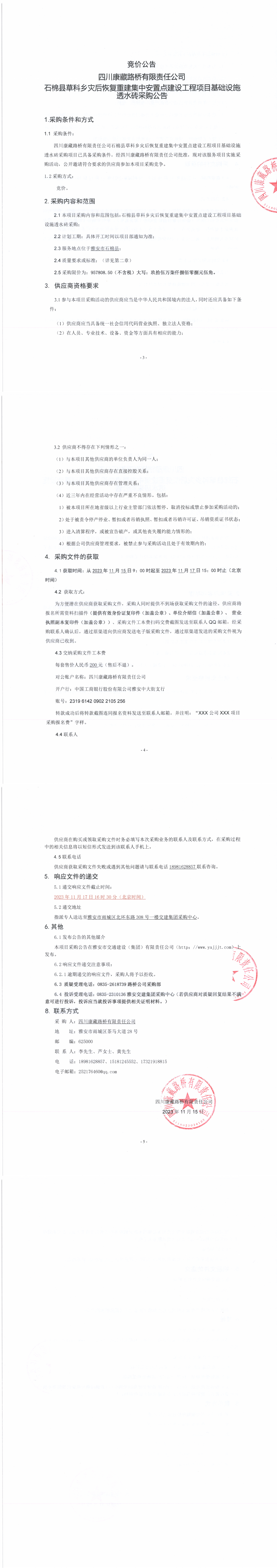四川康藏路橋有限責(zé)任公司石棉縣X073兩河口至界碑石(甘孜界)災(zāi)后恢復(fù)重建工程項(xiàng)目路基路面輔助材料采購(gòu)公告