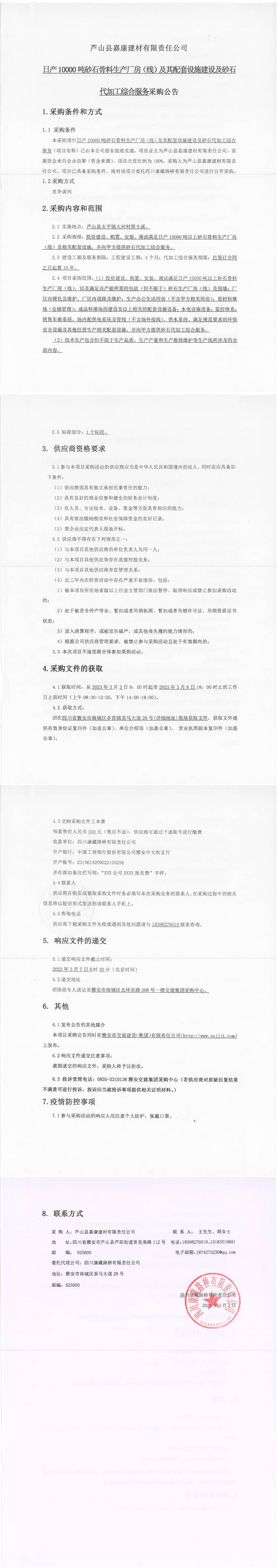 蘆山縣嘉康嘉康建材有限責任公司日產(chǎn)10000噸砂石骨料生產(chǎn)廠房(線)及其配套設(shè)施建設(shè)及砂石代加工綜合服務(wù)采購公告