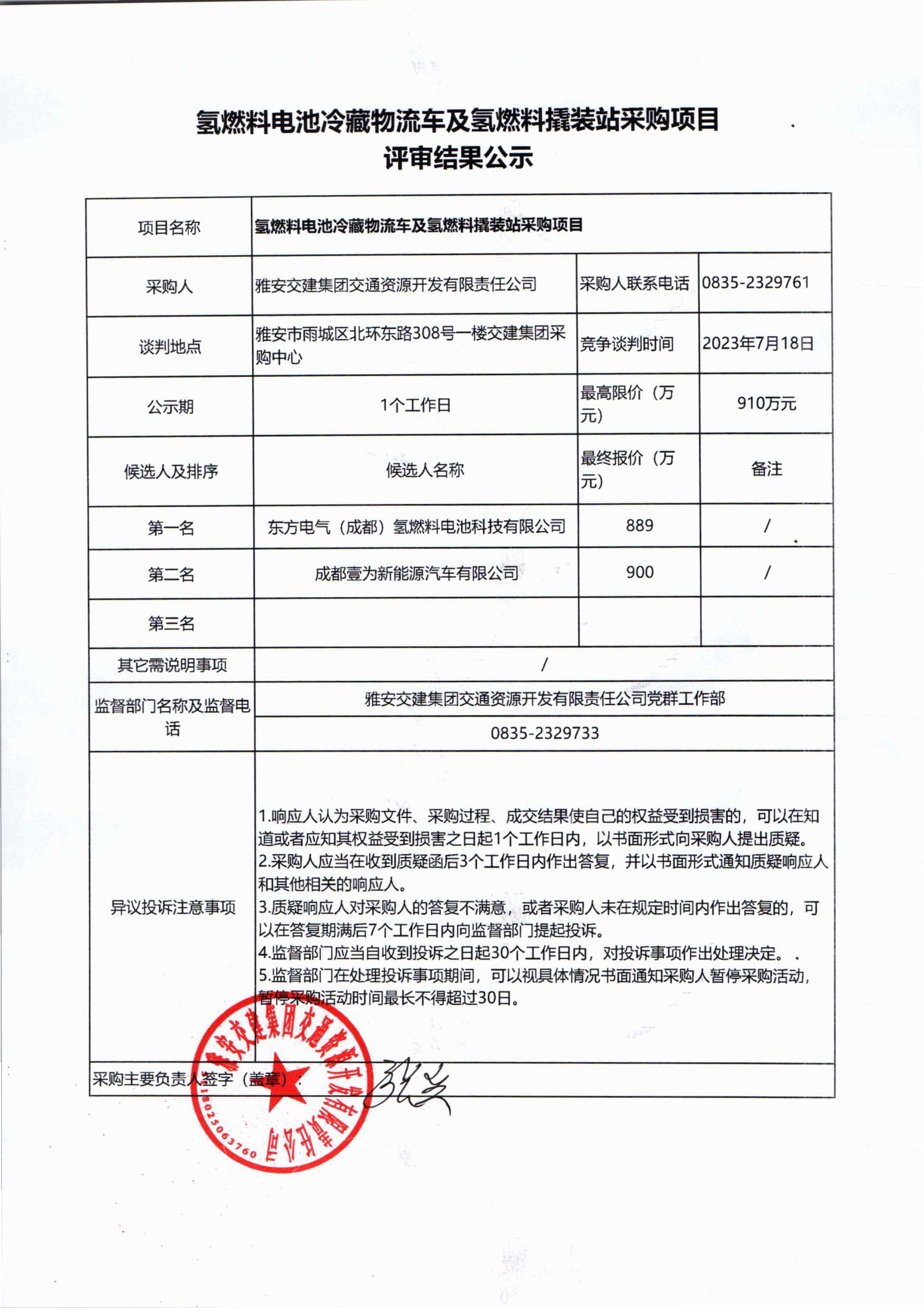 雅安交建集團(tuán)交通資源開發(fā)有限責(zé)任公司氫燃料撬裝站采購(gòu)項(xiàng)目評(píng)審結(jié)果公示