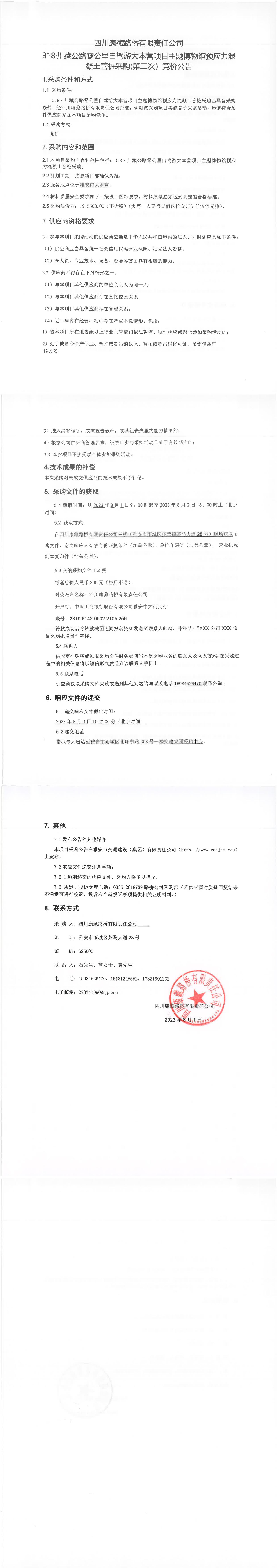 四川康藏路橋有限責(zé)任公司國(guó)道318名山區(qū)黑竹(成都界)至雨城區(qū)多營(yíng)段改建工程壓漿料采購(gòu)公告