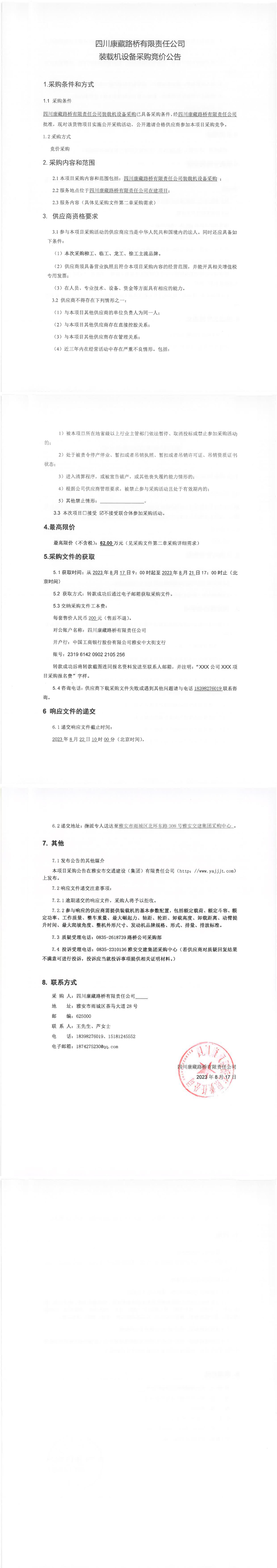 四川康藏路橋有限責任公司裝載機設備采購競價公告