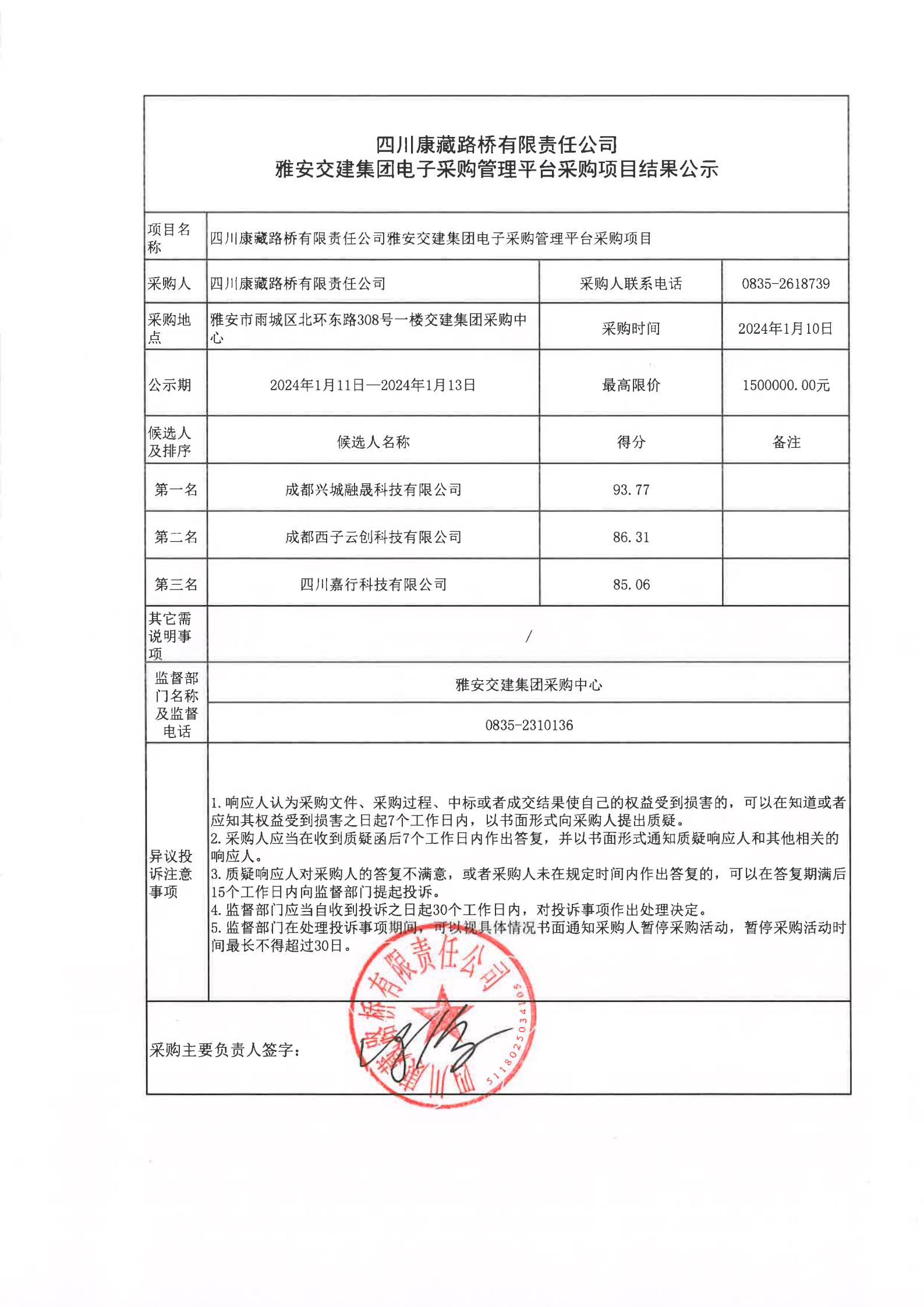 四川康藏路橋有限責(zé)任公司雅安交建集團(tuán)電子采購管理平臺采購項(xiàng)目結(jié)果公示
