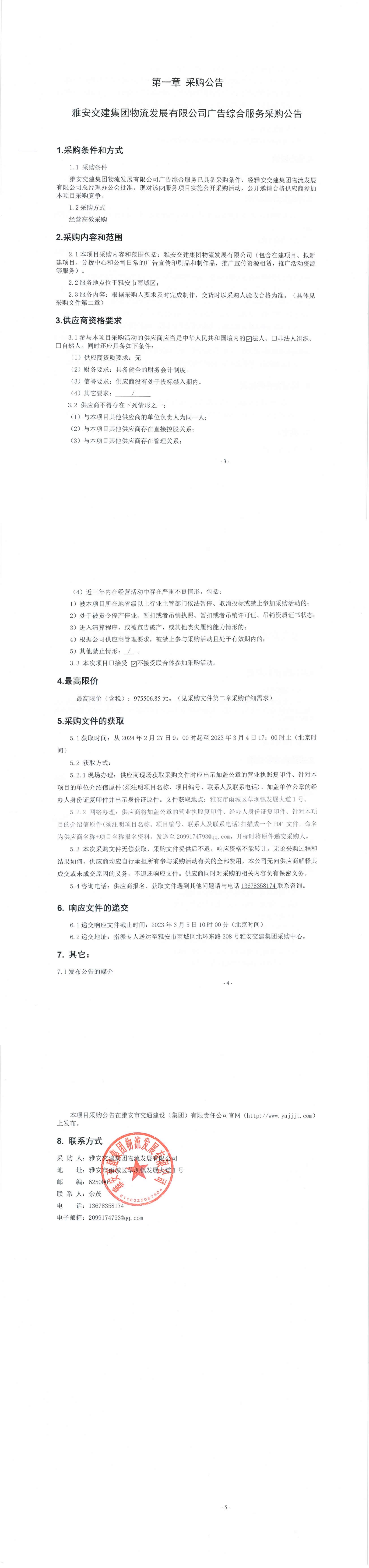 雅安交建集團(tuán)物流發(fā)展有限公司廣告綜合服務(wù)采購公告