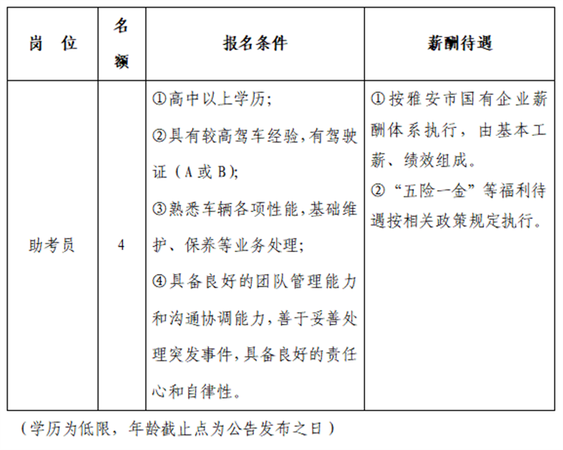 雅安交建集團(tuán)平順檢測有限公司主要經(jīng)營項目為機(jī)動車安全技術(shù)檢驗、機(jī)動車駕駛員培訓(xùn)(科目二、三適應(yīng)性訓(xùn)練)、機(jī)動車環(huán)保定期檢驗、汽車綜合性能檢測等相關(guān)業(yè)務(wù)。因業(yè)務(wù)發(fā)展需要面向社會招聘人員,特公告如下: