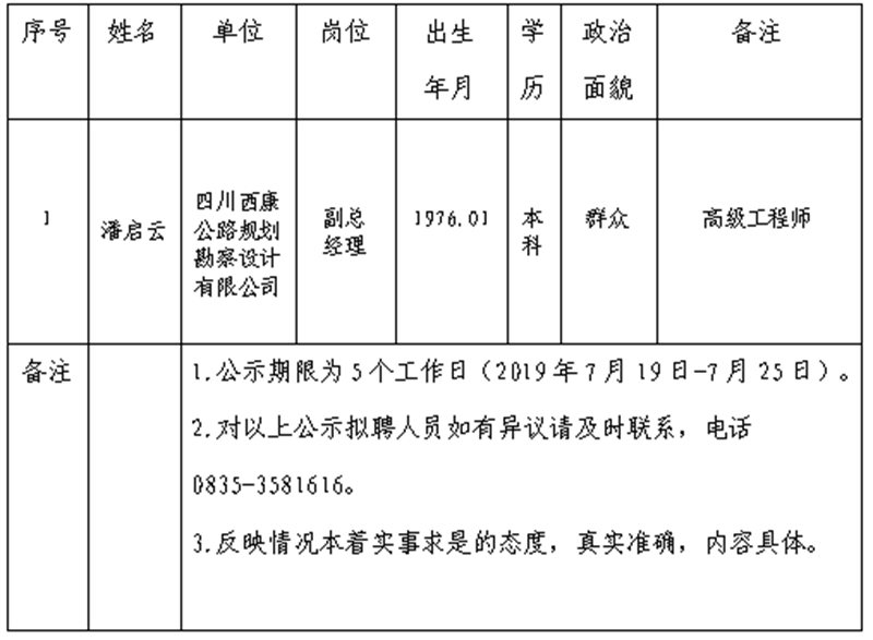 雅安交建集團子公司擬聘用人員公示 (勘察設(shè)計公司)