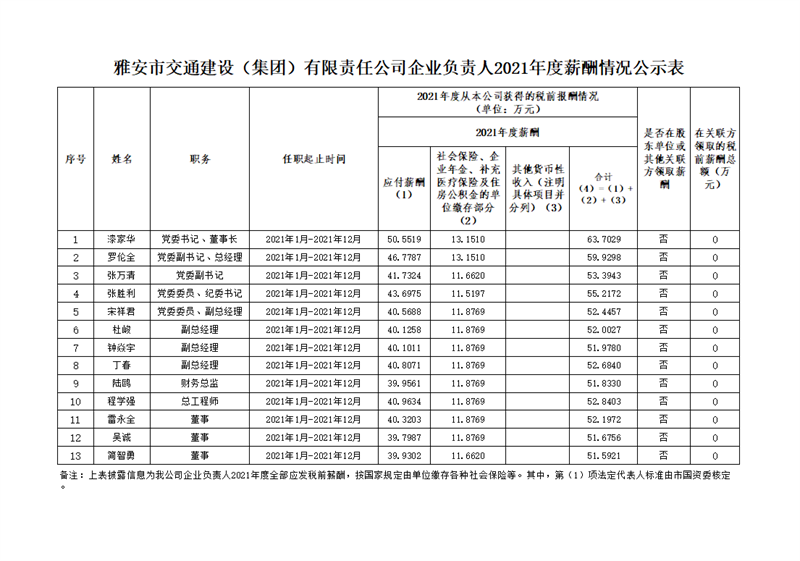 £ºÑŰ²Êн»Í¨½¨ÔO(sh¨¨)£¨¼¯ˆF£©ÓÐÏÞØŸ(z¨¦)Èι«Ë¾Æó˜I(y¨¨)ؓ؟(z¨¦)ÈË2021Äê¶Èн³êÇé›r¹«Ê¾±í
