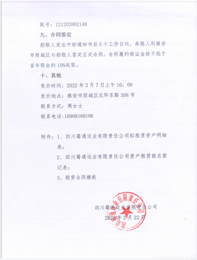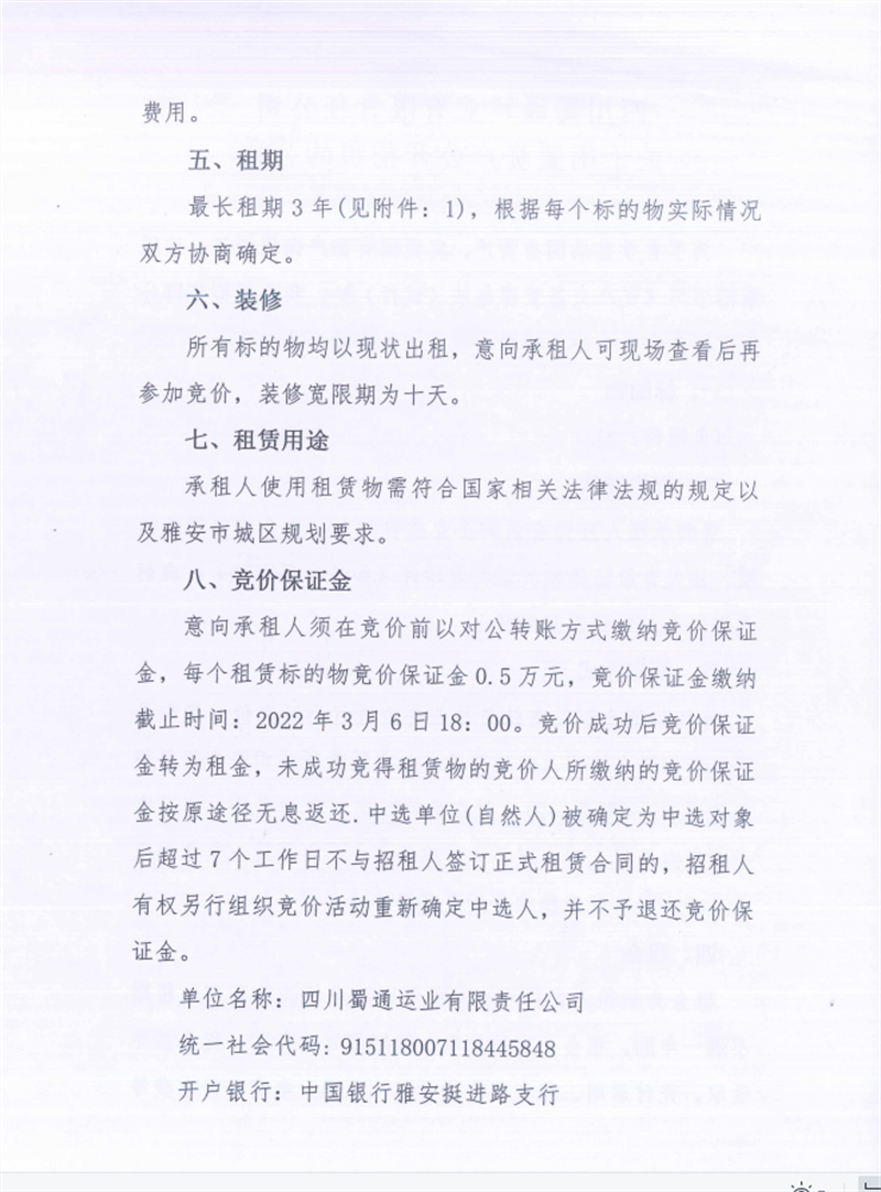 蜀通公司關于閑置資產掛網招租的公告