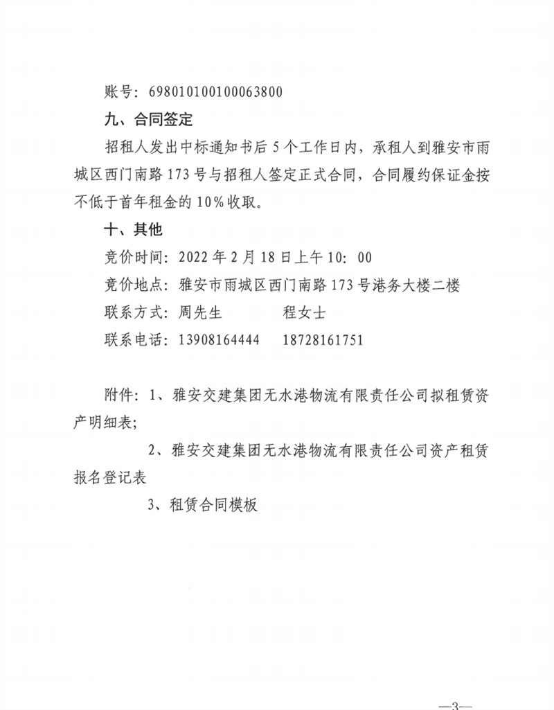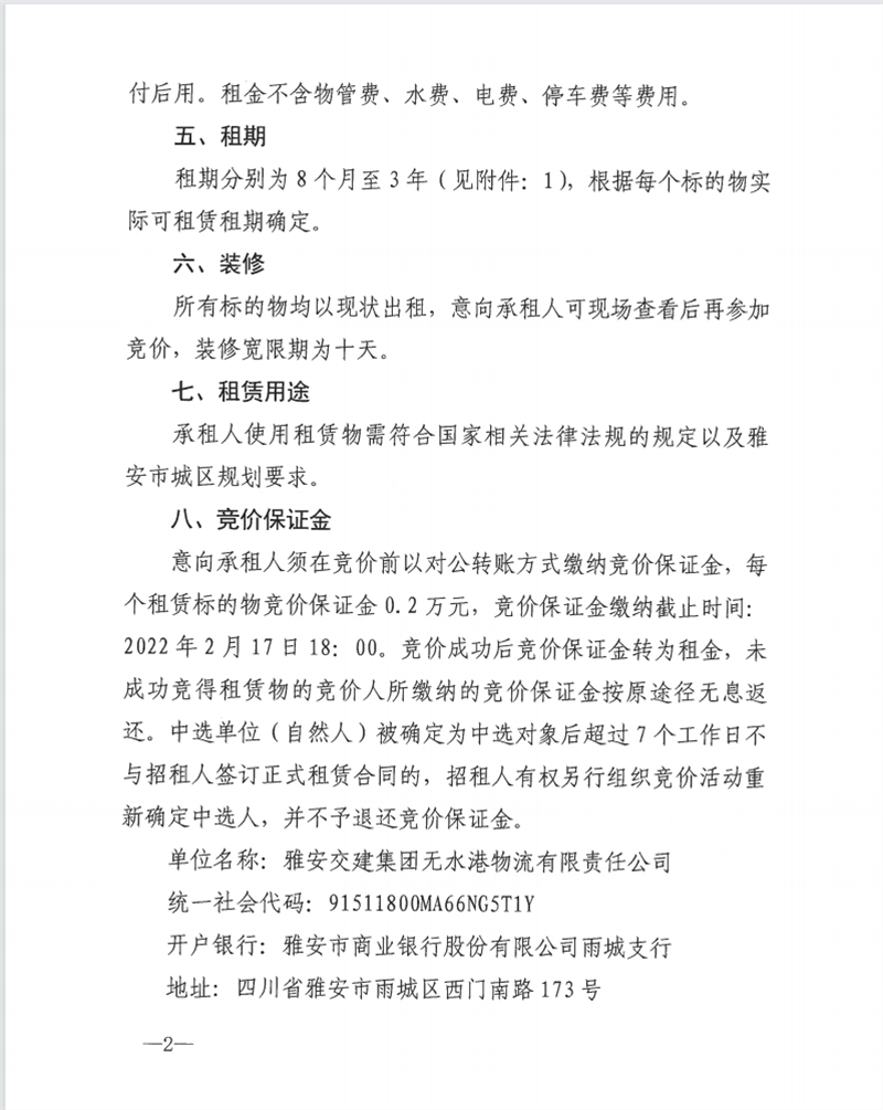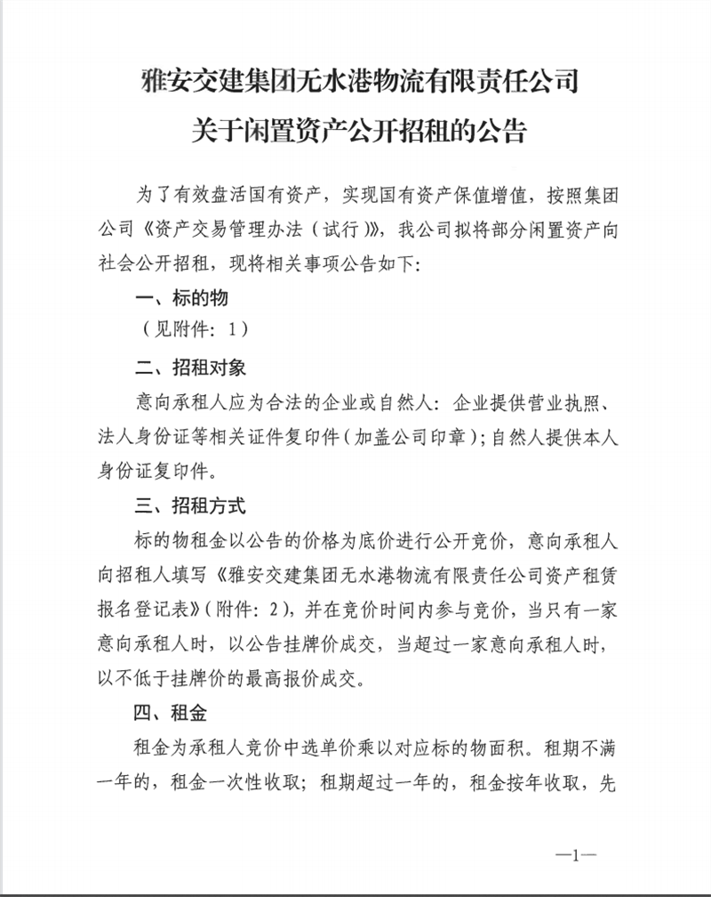 無水港公司關(guān)于閑置資產(chǎn)公開招租的公告