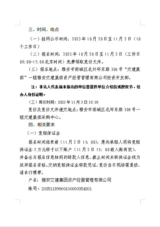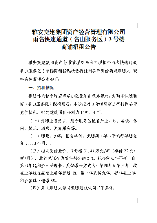 雅安交建集團資產(chǎn)經(jīng)營管理有限公司 雨名快速通道(名山服務(wù)區(qū))3號樓商鋪招租公告