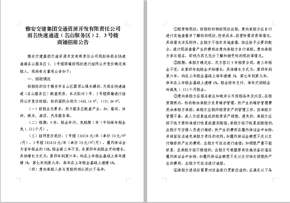 交通資源開(kāi)發(fā)公司雨名快速通道(名山服務(wù)區(qū))2、3號(hào)樓商鋪招租公告附件