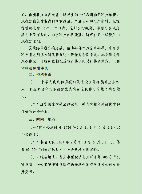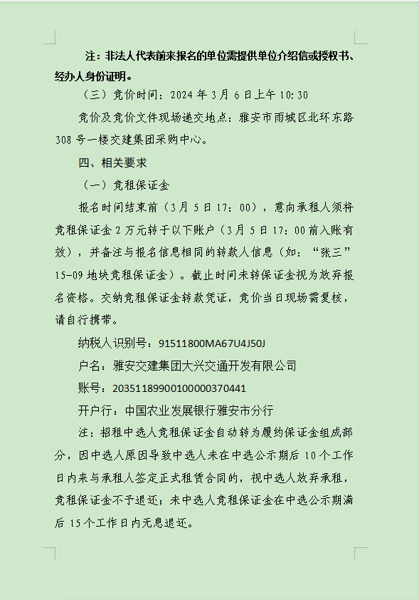 雅安交建集團(tuán)大興交通資源開發(fā)有限公司關(guān)于雨城區(qū)姚橋片區(qū)15-09地塊2024年競(jìng)價(jià)招租的公告附件