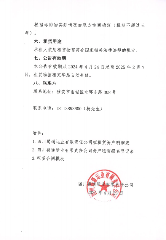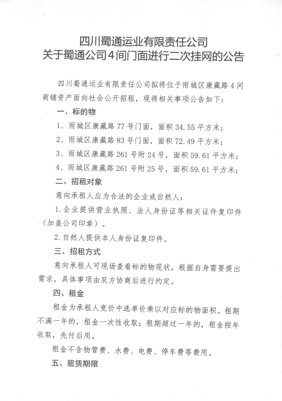 四川蜀通運業(yè)有限責任公司關(guān)于蜀通公司4間門面進行二次掛網(wǎng)的公告附件