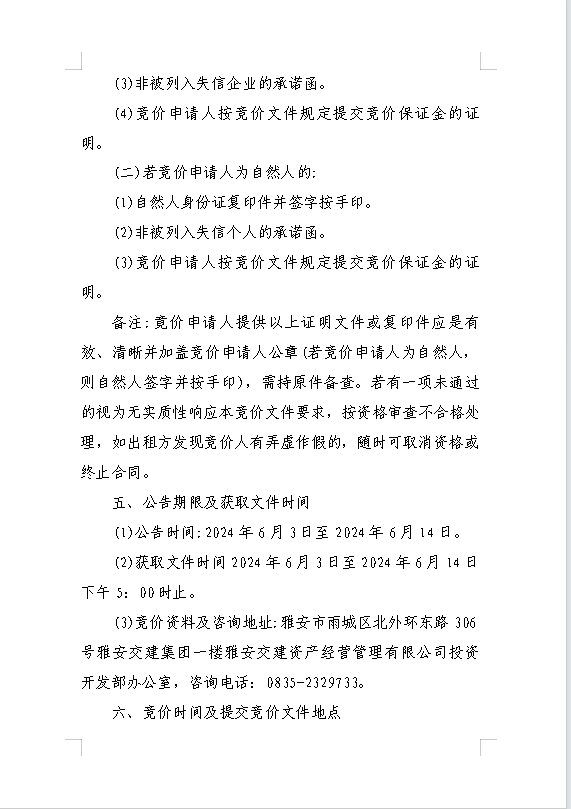 雅安交建集團資產(chǎn)經(jīng)營管理有限公司關于戶外廣告位競價招租的公告附件