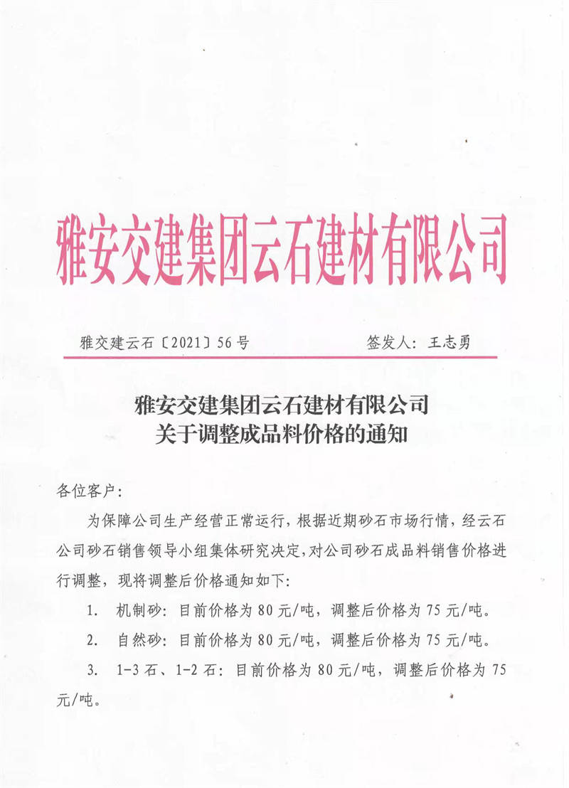 ÑŰ²½»½¨¼¯ˆF(tu¨¢n)ÔÆÊ¯¹«Ë¾êP(gu¨¡n)ÓÚÕ{(di¨¤o)Õû³ÉÆ·ÁÏäNÊÛƒr(ji¨¤)¸ñµÄ֪ͨ£¨2021.11.4£©