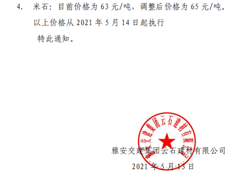 ÑŰ²½»½¨¼¯ˆF(tu¨¢n)ÔÆÊ¯¹«Ë¾É°Ê¯¹ÇÁÏäNÊÛƒr¸ñÇé›r±í£¨2021.5.14£©