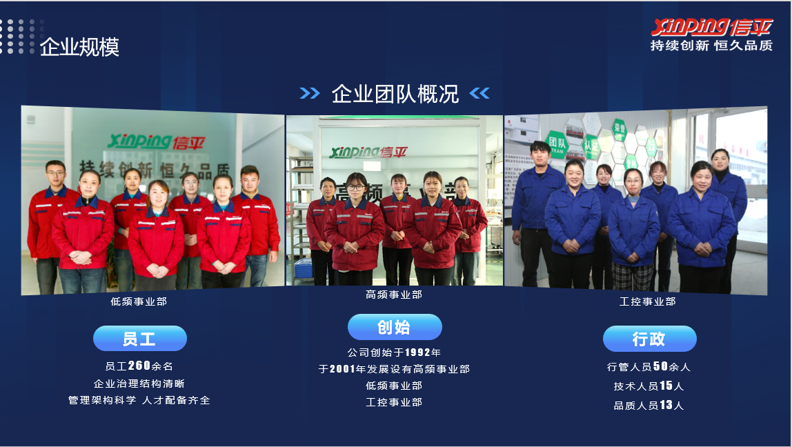 德州信平電子一直追求精益生產(chǎn)的管理理念,一絲不茍的品質(zhì)要求和不斷創(chuàng)新的工匠精神,不斷打造符合客戶需求的有競(jìng)爭(zhēng)力的高品質(zhì)產(chǎn)品和整體解決方案。大力發(fā)揚(yáng)自信自強(qiáng)、追求卓越的信平精神,努力實(shí)現(xiàn)“創(chuàng)變壓器世界品牌,做全球變壓器定制中心”是我們發(fā)展的目標(biāo)。公司愿與本行業(yè)有志之士密切合作,共創(chuàng)美好明天。